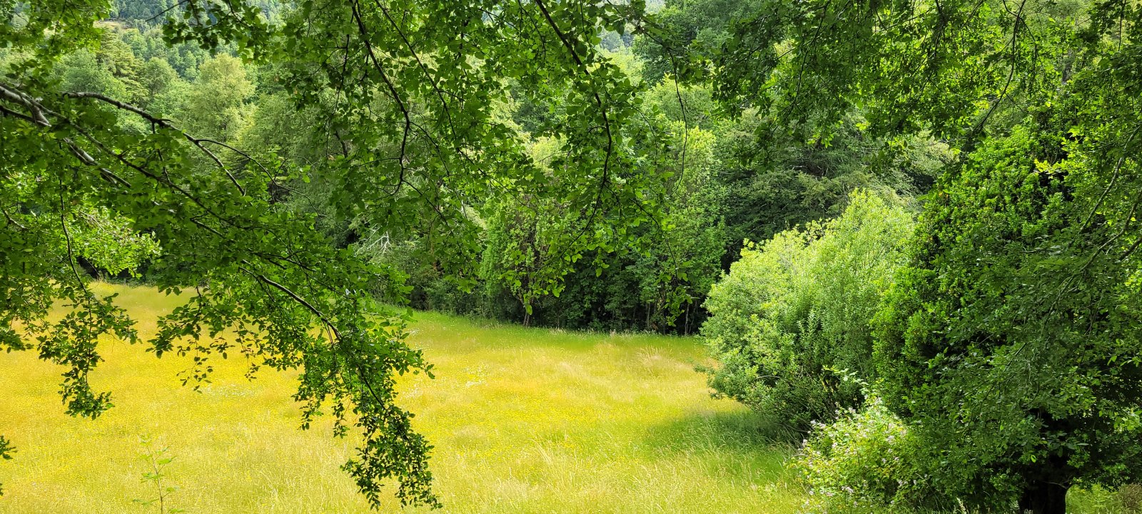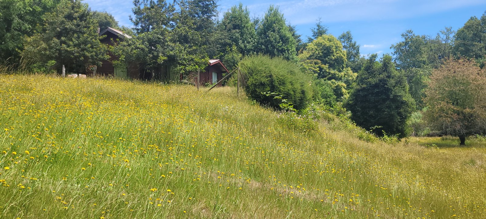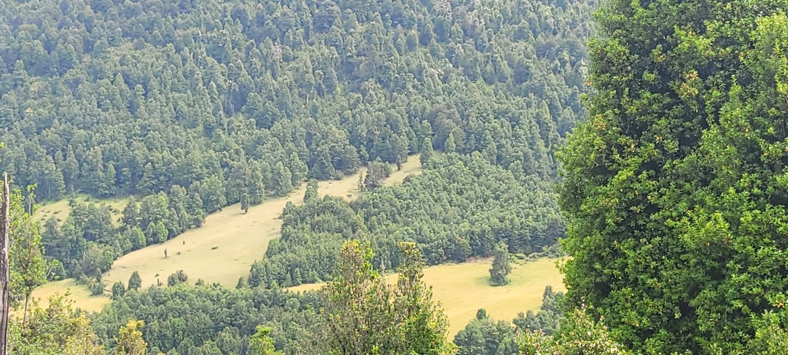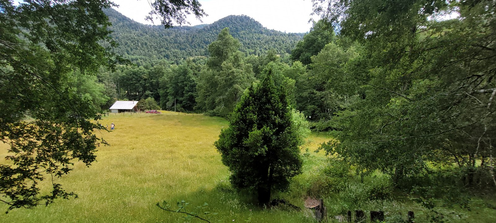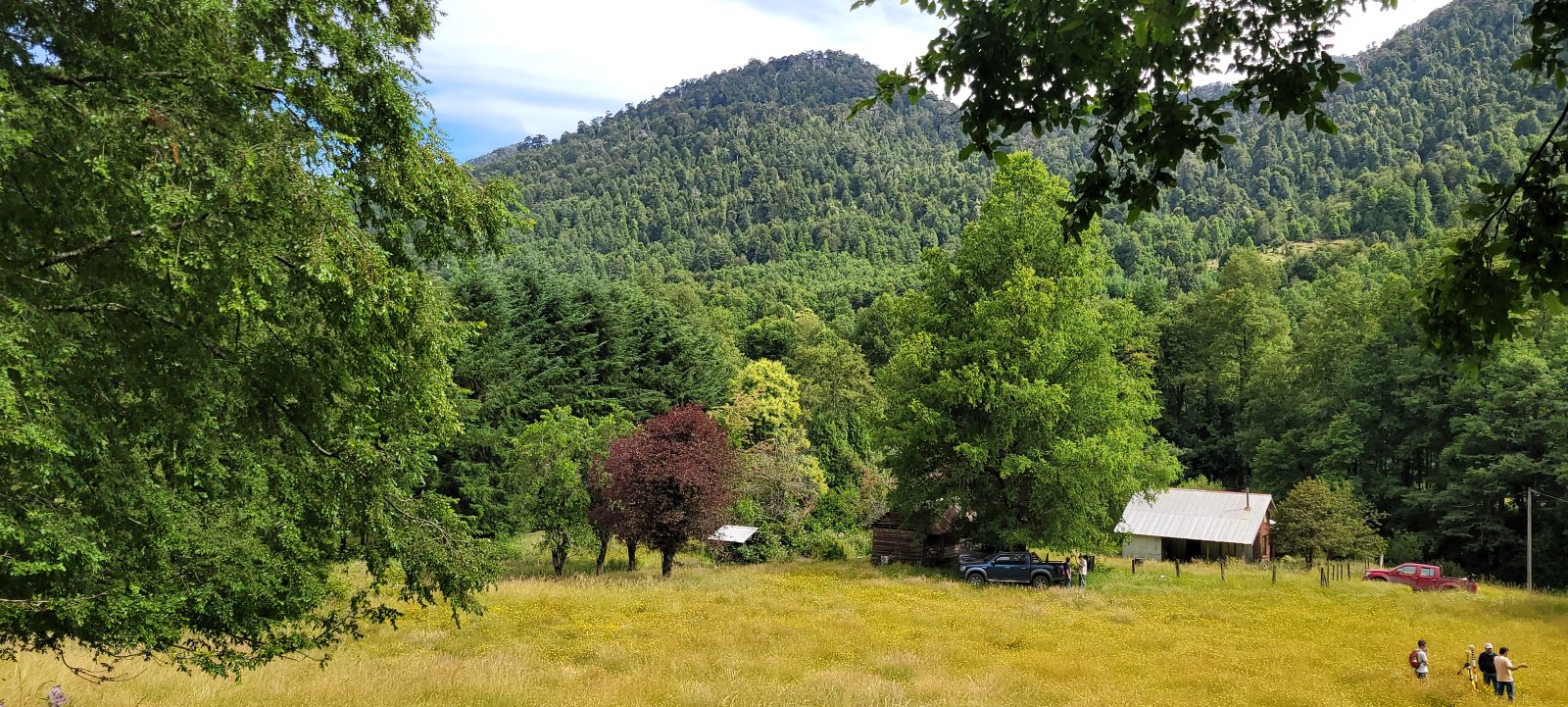 El campo combina sectores planos, suaves y fuertes lomajes, rodeados por bosque nativo, vertientes cristalinas y el río Coilaco, que bordea parte de la propiedad.