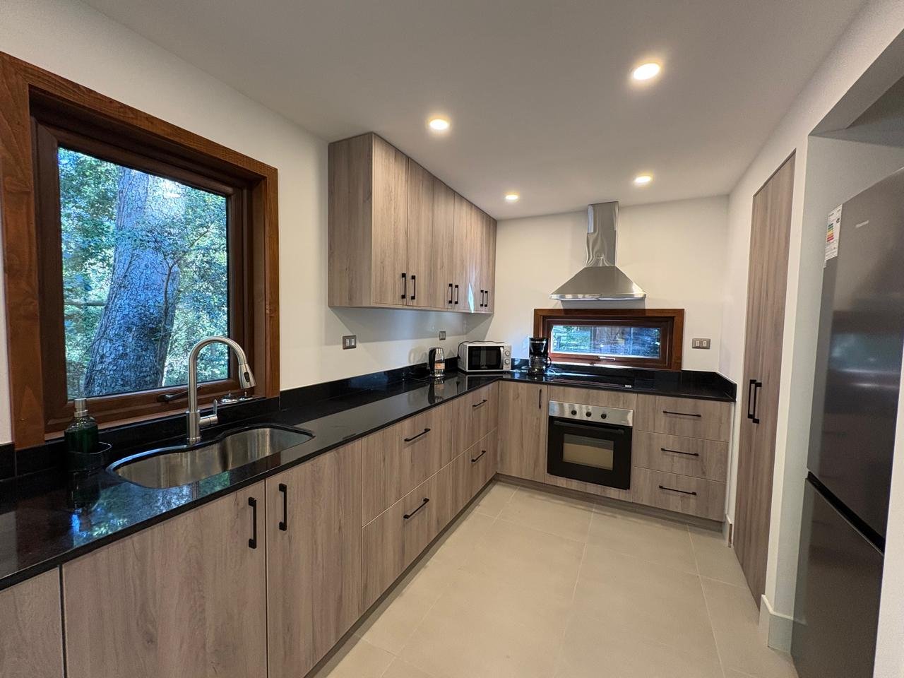 Hermosa casa recién construida, 90 m2 más terrazas , en terreno de 1000 m2 , rodeada de vegetación nativa , a 5 minutos del centro de Pucón. Condominio muy seguro , conserjería, electricidad subterránea , Aguas Araucanía, alcantarillado, fibra óptica.
