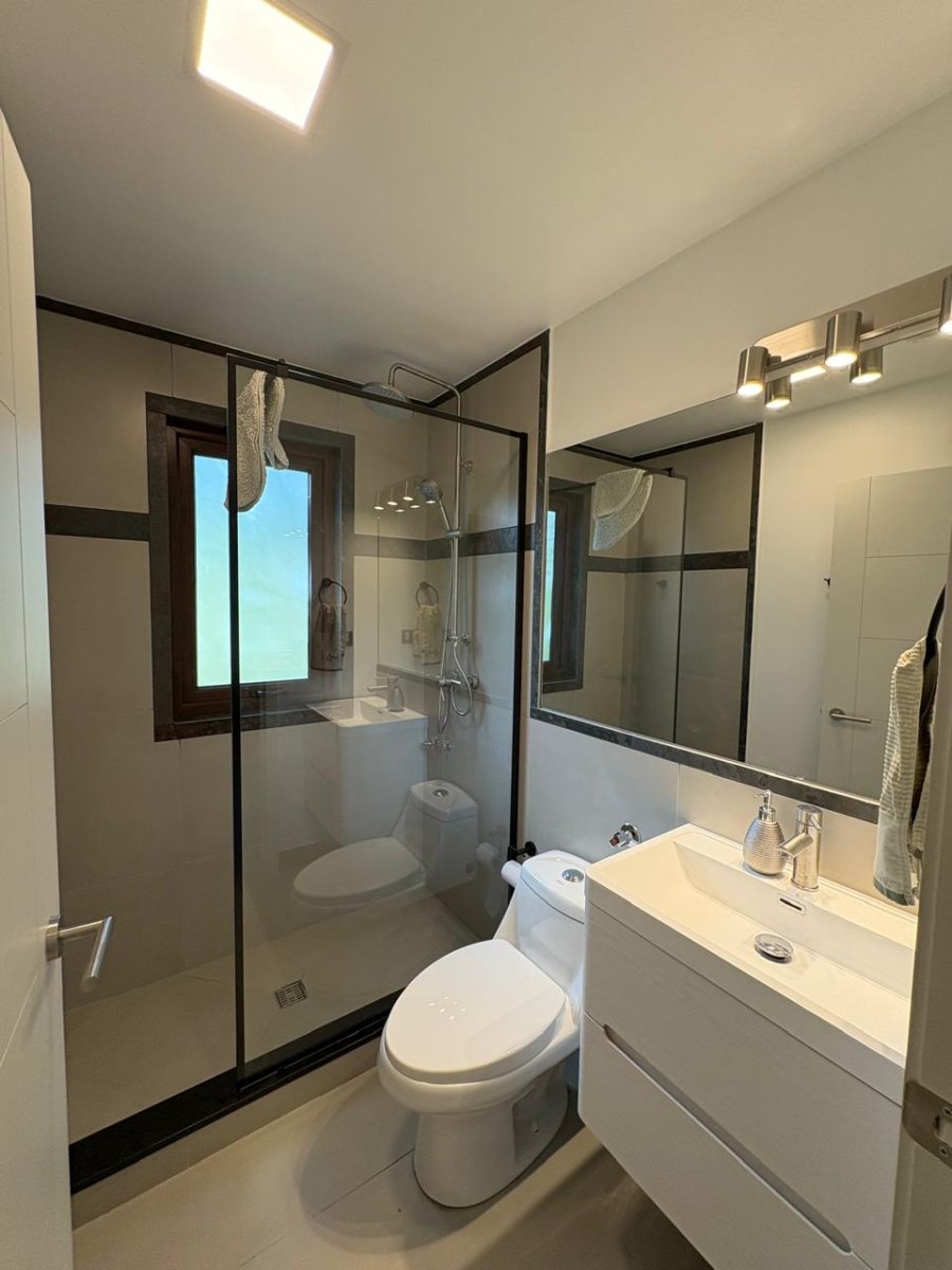La casa cuenta con 3 luminosos dormitorios ( 1 en suite ) 2 baños , living comedor, cocina integrada y equipada. Ventanas termopanel.